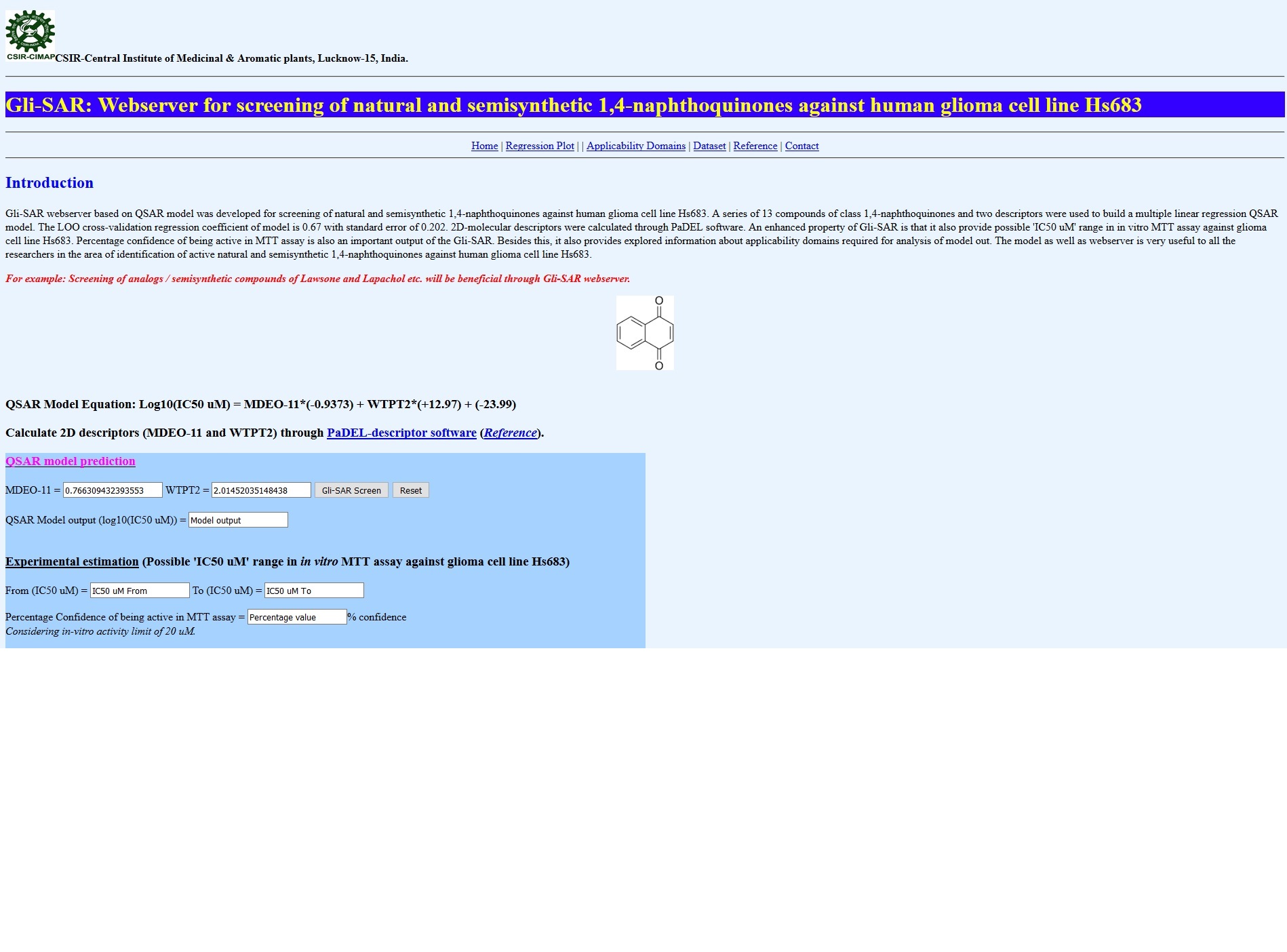 Summary: The Q-Lead (http://bioinfo.cimap.res.in/qlead/) is a software tool for predicting biological activity of untested natural molecules and it's derivatives/analogues, to provide molecular insight into relevant 2D & 3D chemical descriptors responsible for certain biological activity. For this, Q-Lead uses various in-house developed local and global Quantitative Structure-Activity Relationship (QSAR) models based on different natural chemical series. The Q-Lead models quantitatively correlate chemical descriptors (structural properties) with biological activities for a set of similar compounds by using statistical modeling such as Multiple linear Regression (MLR) or PLS. The Q-Lead tool covers 2D QSAR models, which mimicks the bioactivity evaluation through in vitro studies, including both cell line and target based screening assays. The QSAR models included chemical series of following natural compounds e.g., 18ß-Glycyrrhetinic acid (GA), Ursolic acid (UA), Camptothecin (CPT), Chalcone, artemisinin, vaniloids (capsaicin and capsazepine), and Xanthone derivatives for anticancer, antibacterial, antimalarial and immunomodulatory/antiinflammamtrory activities, both cell line and target enzyme specific. The Q-Lead tool could be more useful in early identification of potential drug-like leads.